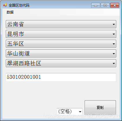 因为需要输入一个地点的完整信息,如“云南省昆明市五华区华山街道翠湖西路社区”,手输太麻烦容易错,于是制作了一个小程序。