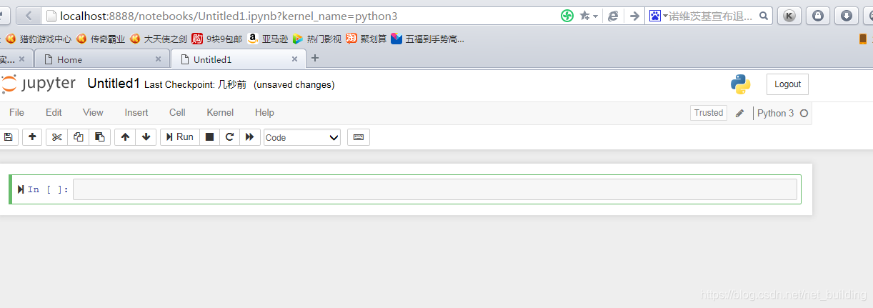 单击右上角的“new”菜单,选择“Python3”,进入下面的界面: