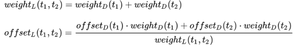 t = (t1 * w1 + t2 * w2) / w;
