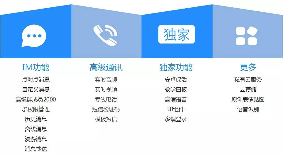 一是释放技术团队非核心业务的精力投入。开发者通过客户端SDK和云端OPEN API 即可在最短时间内获得稳定可靠的IM功能;