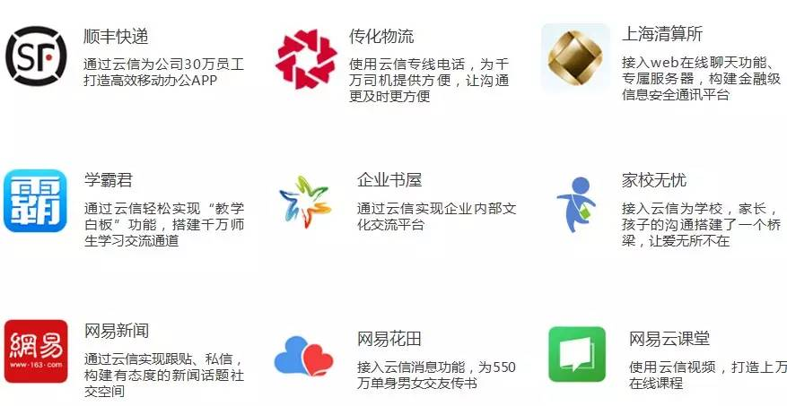 一个拥有十几、二十万员工的大型企业,它的员工和他们的服务节点之间都需要进行通讯,这种通讯既有文字的也有电话形式的,这些都是网易云信所能提供的通讯能力,这是传统企业部分。另外一部分就是科技企业,科技企业分很多阶段,不管是初创的还是相对成熟的,或者是已经达到商业模式相对清晰的阶段,每个科技企业对即时通讯都有不同的需求。