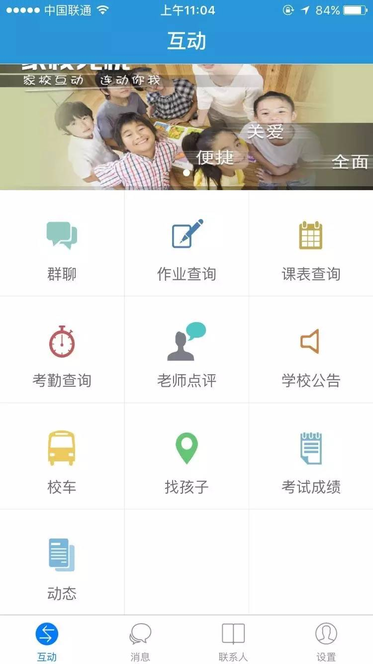 家校无忧 能帮助教师和家长更方便地沟通,实现实时管理学生. 提供内部通信录、即时通讯、群聊、考勤、家庭作业、课程表、点评、公告、校车定位、学生定位通话等功能,让教师办公更方便;让家长对孩子的学习和安全更放心。