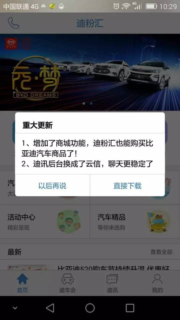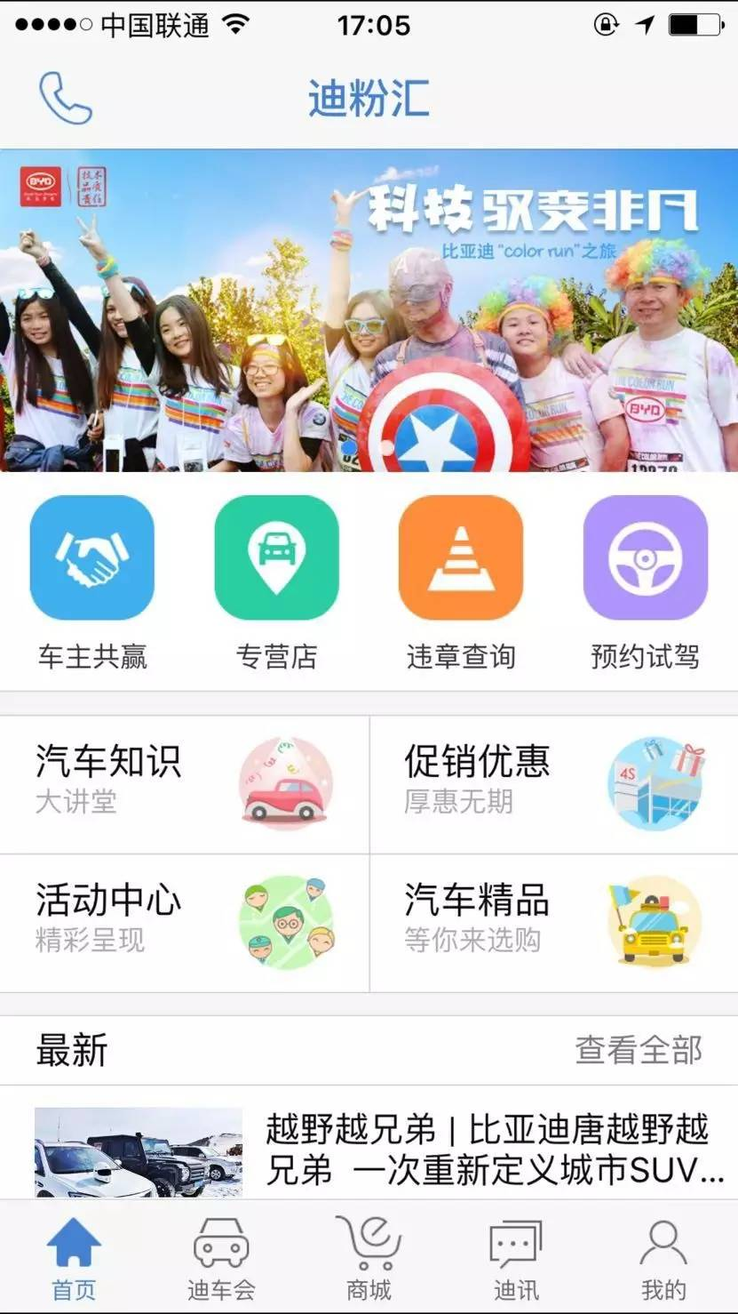 迪粉汇是比亚迪股份有限公司为广大用户开发的掌控汽车移动生活的应用利器!通过迪粉汇,可以及时获取比亚迪最新的新闻资讯、查看自己爱车的各种相关信息、参加车主共赢活动、直接通过迪车会论坛APP端与车友交流、通过迪讯让用户跟用户,用户跟比亚迪官方可以更亲密更快捷的沟通。