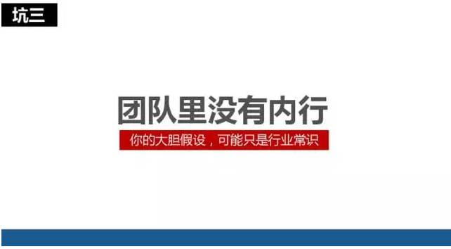 比如做母婴、垂直电商、O2O、快餐、物流,都需要找到这个行业里真正的内行,加入团队,或者成为团队顾问,在关键时刻给予适当的点拨,让整个团队有更高效率。