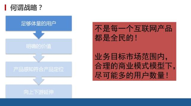 最初做产品的时候,大家都知道目标受众是谁、细分市场是什么,但是往后做的时候,往往会偏移掉。在业务目标市场范围内,要有尽可能多的用户数量,这才叫“足够体量”。
