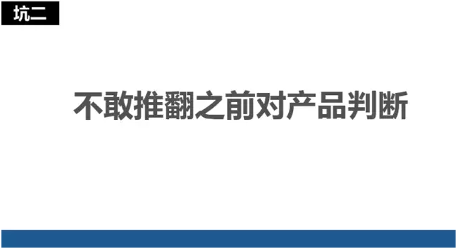 这是一个很大的思维陷阱,需要大家时时刻刻保持警惕,该推翻的时候要推翻。当然,这一块没有那么简单,需要强有力的证据、数据支撑自己,推翻之前对产品、市场的判断。