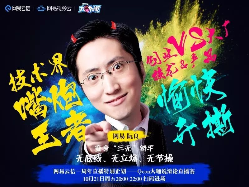 网易云信一周年,一言不合就携手InfoQ大咖说空降上海QCon全球软件大会,举办高bigger的技术圈「奇葩说」,中外一线互联网公司5位技术大咖相约10月21日(周五晚),欢乐开撕~