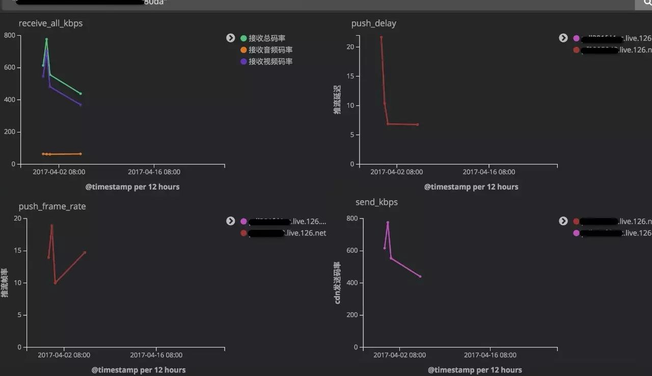 当然,只有机器级的数据,是远远不够的。俗话说,不与业务贴合的数据,不是好数据。作为直播cdn服务,最常规的参数,自然是音视频码率和延迟。