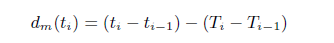 如上图所示, 用两个数据包的到达时间间隔减去他们的发送时间间隔, 就可以得到一个延迟的变化, 这里我们称这个延迟的变化为单向延迟梯度(one way delay gradient), 其公式可记为: