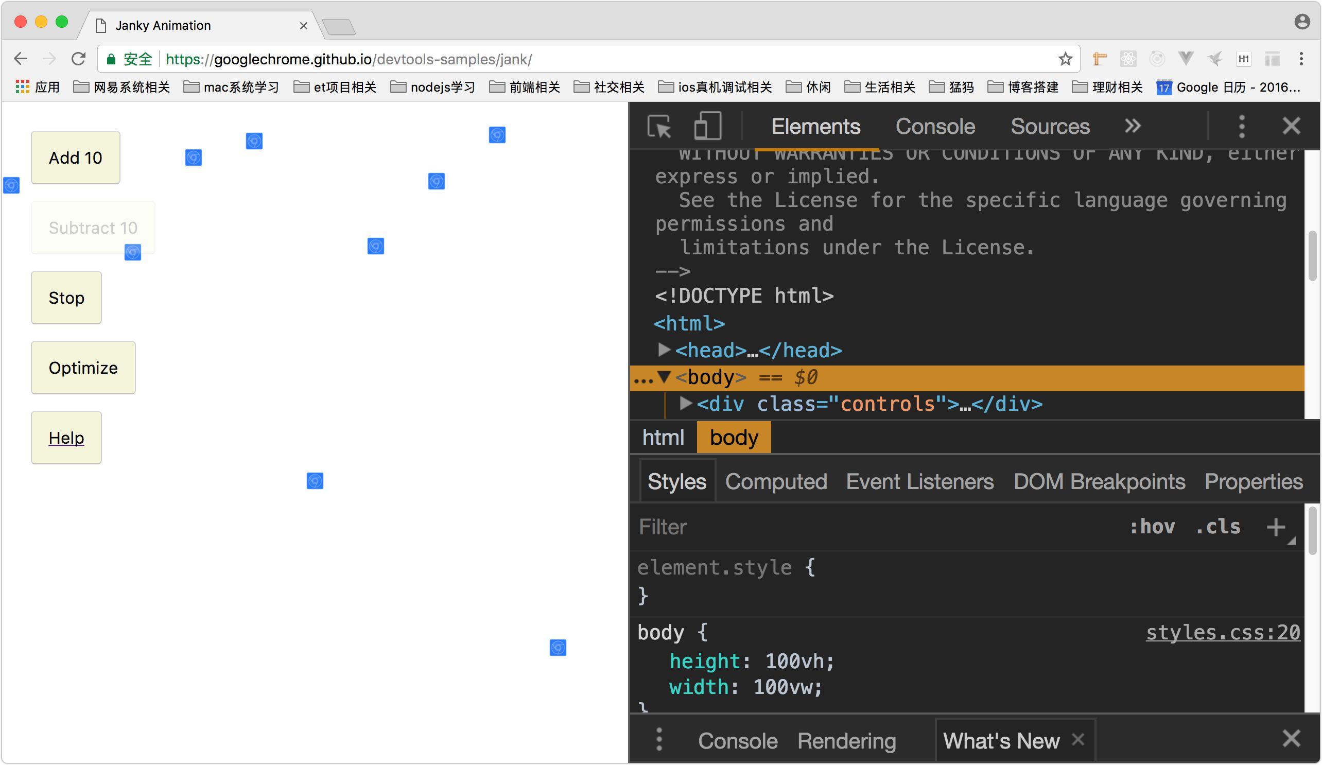 首先复制以下链接至浏览器获取官网提供的demo:https://googlechrome.github.io/devtools-samples/jank/