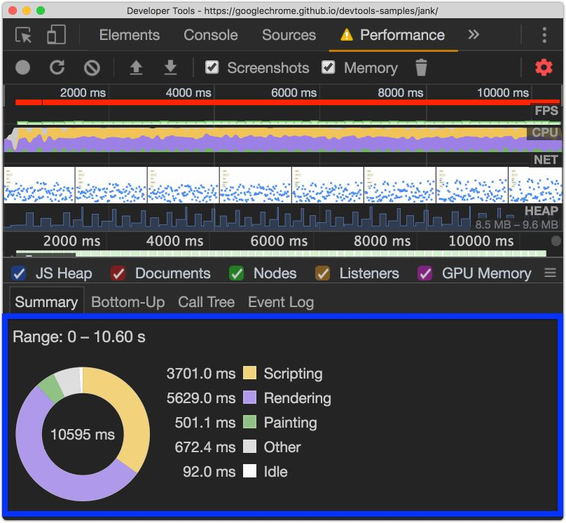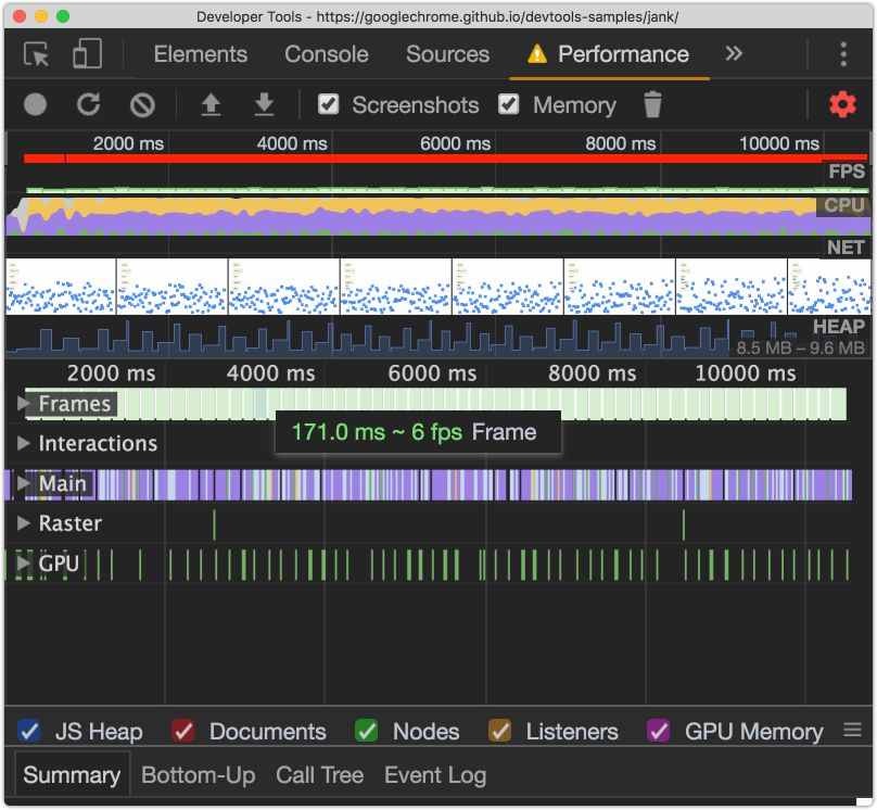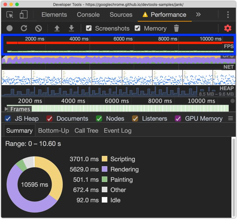 下面的教程指引了如何利用chrome开发车工具(DevTools)的performance面板来分析运行时性能。