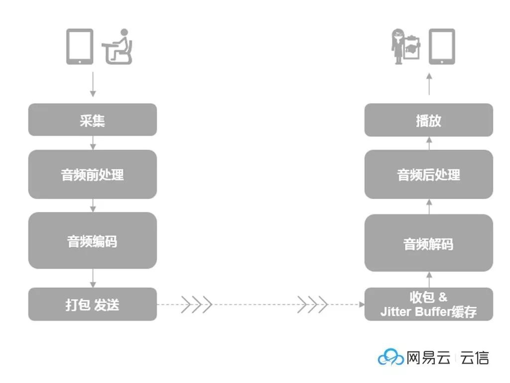 网络传输:传统的VOIP基于实时性、可理解以及顺畅的目标下,会给音频预留较低的带宽,冗余包的信息较少,jitterbuffer等策略的设计也是满足基本可理解声音的要求下尽量的降低时延。在音乐的内容下,整体的音质在对抗网络的状况中变化较大,用户体验不好。