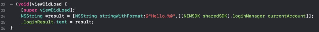 在登录成功进入主界面MainTabVC后,还可更新欢迎字样。如要显示登录者的账号,可以通过NIMLoginManager协议的-currentAccount获得。