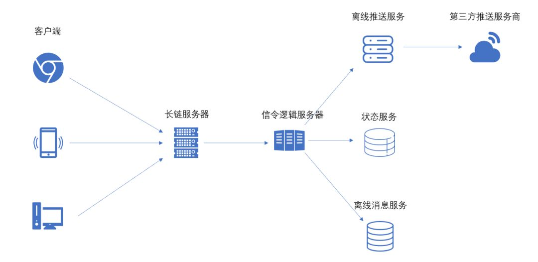 在解决了网络问题后,下一步就是如何保证 client 实时在线或及时上线的问题。这一步有两种方案,一是尽量保持 client 在线,这样就能实时收到信令消息,二是,如果 client 不在线,如何让它及时上线并收取信令消息,这两种方案不是非此即彼的,而是相互补充的。