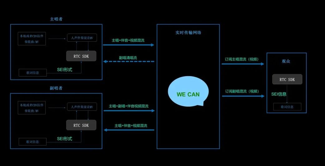 因此,网易云信推出了第二种“真实时”在线多人合唱方案。