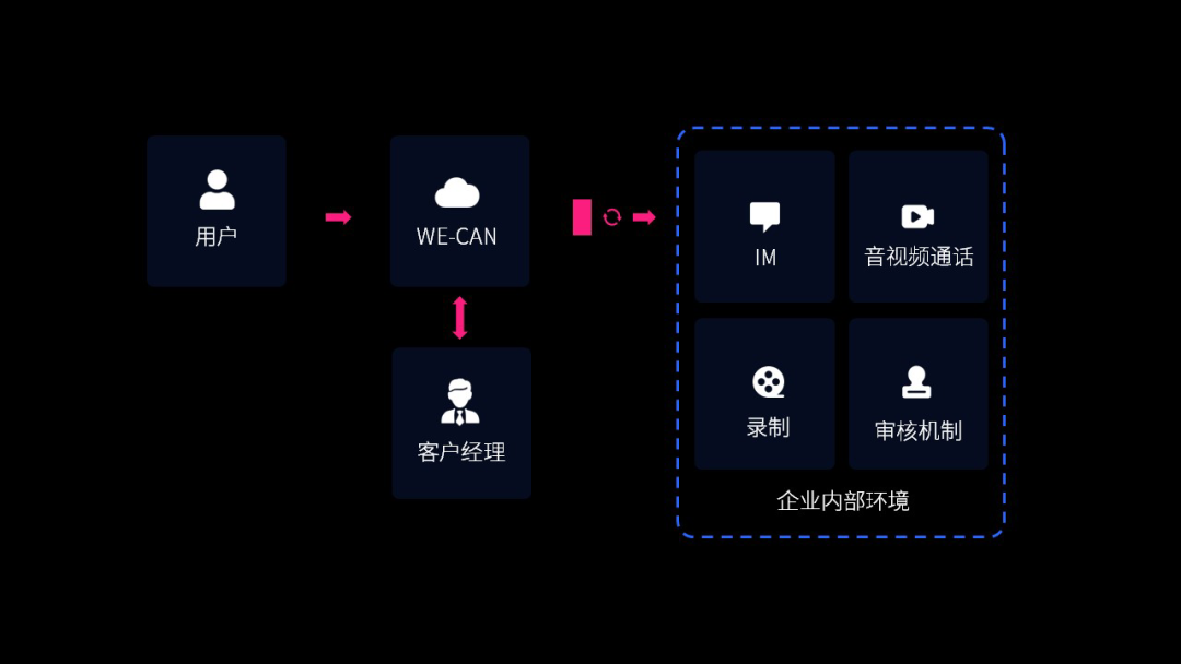 视频营业厅核心场景的变化,除了依赖银行自身业务能力要做到在线化处理外,还有一个很重要的载体:远程接入的音视频过程。围绕线上视频营业厅建立的各个环节,还有一些技术挑战点要去解决: