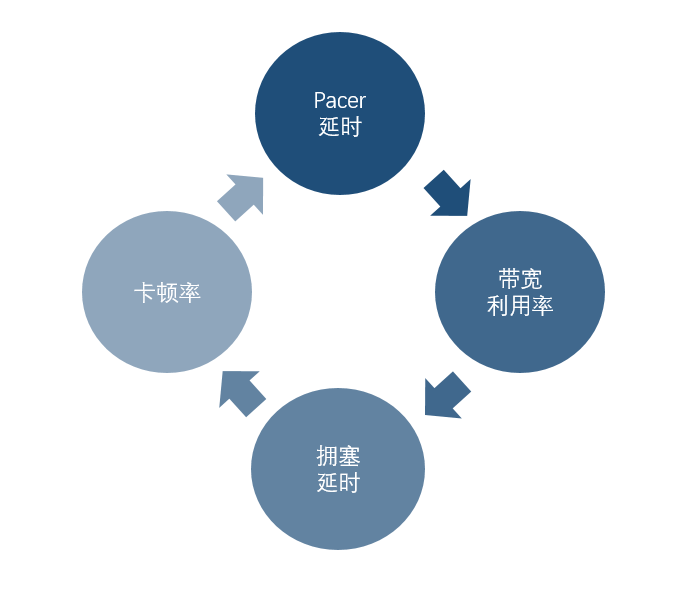 由 Pacer 系数控制平滑力度,若 Pacer 系数等于1.0,则表示严格按照带宽估计值发送数据,此时对网络的突发冲击最小,有利于提升带宽利用率和稳定性,但可能会引入一定的帧发送延时(Pacer 延时)。