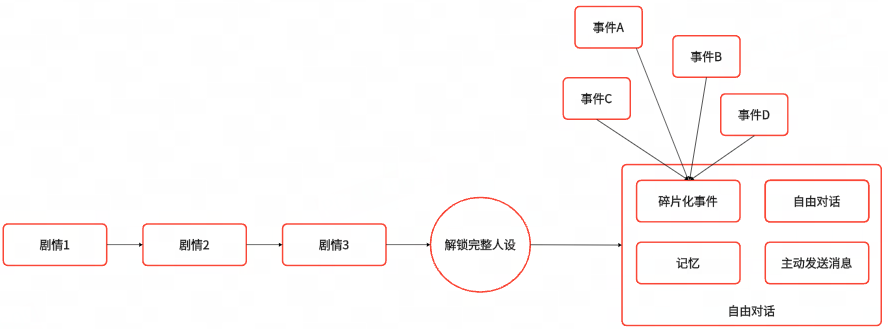 故事引擎首先通过少量精心手写的高质量线性剧情,如同叙事性游戏中的强引导开场,迅速为用户建立明确的情感钩子,并树立起一个立体、可信的角色形象。