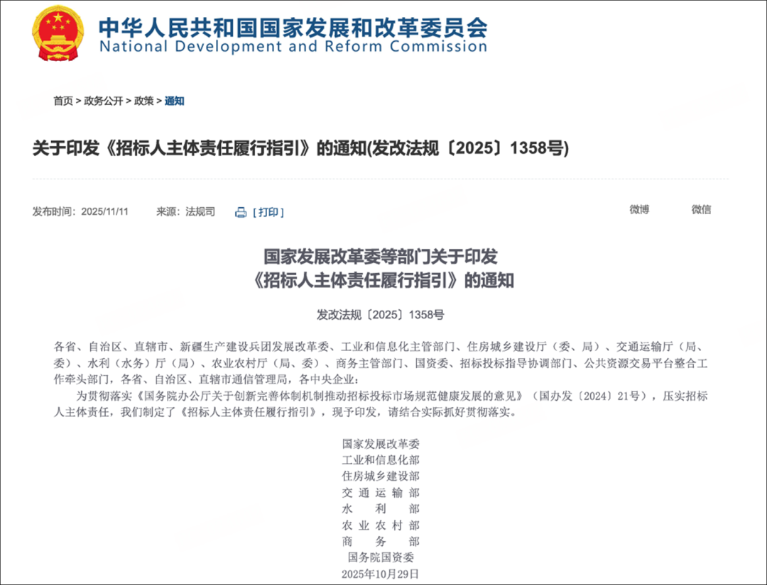 全文阅读👉:国家发展改革委新闻发言人就《招标人主体责任履行指引》答记者问