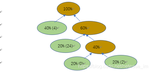 (5)熵编码。熵编码的目的是去除统计冗余,实现数据的进一步压缩。这么说可能有点抽象,举个例子,假设有这样一组数据[0,4,4,24,2],如果使用定长编码来进行编码,这段数据可以表示为[00000,00100,00100,11000,00010],每个数据需要5 bit来表示,这段数据的总长度是5 bit x 5=25 bit;如果我们使用哈夫曼来编码,这个数组中每个元素概率值分别如下:数值0的概率是20%,数值4的概率是40%,数值24的概率是20%,数值2的概率是20%,即[20%,40%,20%,20%],根据每个元素的概率构造哈夫曼树(节点中括号内的是数组元素值),如下图所示,因此这段数据可以表示为[0,10,110,111],数据的总长度是11 bit。
