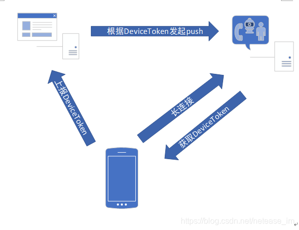 - 设备会根据某些规则生成或从推送服务器获取到一个DeviceToken,推送服务器可以根据DeviceToken定位到具体的设备