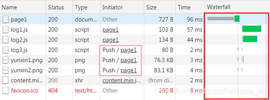 很明显,被push的静态资源可以很快地被使用,而没有被push的资源,如log1.js和log2.js则需要经过较长的时间才能被使用。