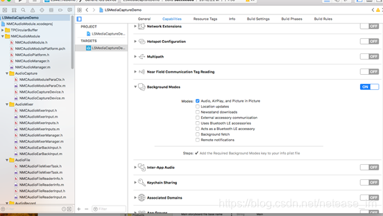 如果需要音频支持后台运行,需要按下图配置:
