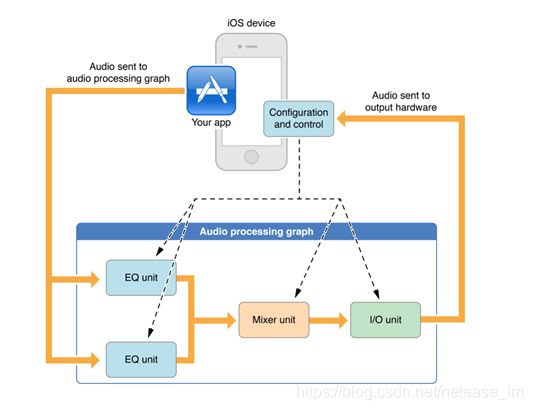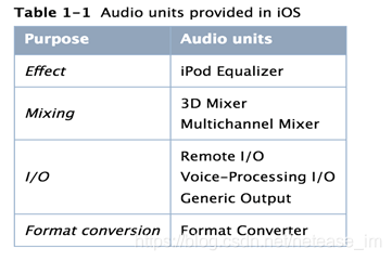 iOS提供了混音、均衡、格式转换、实时IO录制、回放、离线渲染、语音对讲(VoIP)等音频处理插件,它们都属于不同AudioUnit,支持动态载入和使用。AudioUnit可以单独创建使用,但更多的是被组合使用在Audio Processing Graph容器中以达到多样的处理需要。