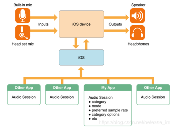 AVAudioSession构建了一个音频使用生命周期的上下文。当前状态是否可以录音、对其他App有怎样的影响、是否响应系统的静音键、如何感知来电话了等都可以通过它来实现。
