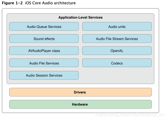 Core Audio 是iOS和 Mac 的关于数字音频处理的基础,它提供应用程序用来处理音频的一组软件框架,所有关于iOS音频开发的接口都是由Core Audio来提供或者经过它提供的接口来进行封装的,按照官方的说法是集播放、音频处理、录制为一体的专业技术,通过它我们的程序可以同时录制,播放一个或者多个音频流,自动适应耳机,蓝牙耳机等硬件,响应各种电话中断,静音,震动等。