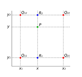 图2. 双线性插值,通过Q11~Q22这四个点预测点P