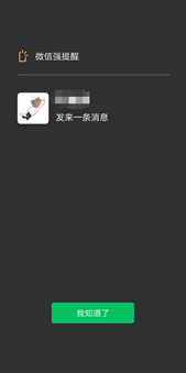 打开新版微信,在你关心的联系人会话页面点击右上角,除了过去的置顶聊天和消息免打扰,新增了一个强提醒开关。打开开关,微信会将对方3小时内发送的第一条消息全屏提醒,并伴随着震动。无论你是打开了微信app。直到你点击“我知道了”。这样的设计,让人几乎无法错过这条消息的内容。