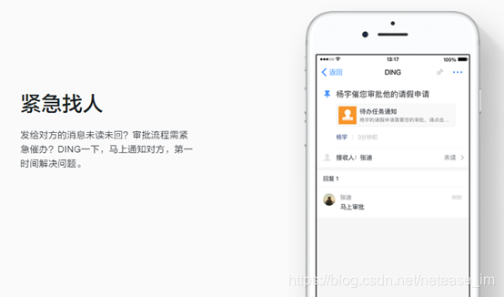 说起办公场景,就不得不说到“钉钉”这款产品。江湖传闻说,群已读回执、打卡、DING一下是钉钉用户最害怕的三个功能,作为办公IM应用,DING一下这个功能被设计的非常重:DING一下可以选择应用内、短信、电话的形式强制通知;接收方无需安装app,甚至无需开启移动数据就能接收;接收方接到电话,可以直接语音回复。