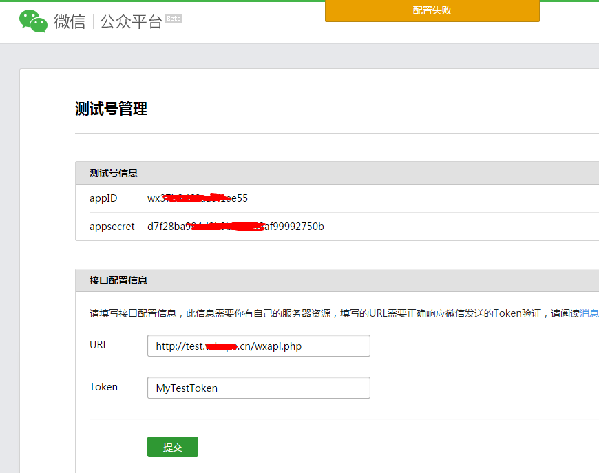 // 微信中就显示配置失败,后来在代码中使用了日志输出才发现iw能收到微信请求,但是