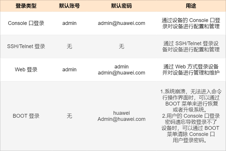 - 如果忘记了所有 SSH/Telnet 账号的登录密码,还可以通过 Console 口登录。