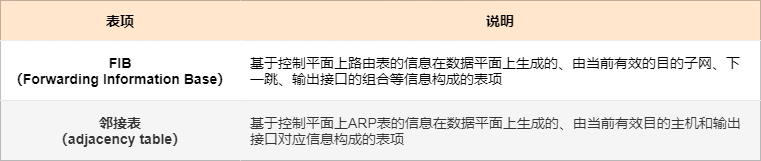 当硬件内部结构分为控制平面和数据平面时,分组的传输需要使用 FIB(转发信息库)和邻接表的信息。这种利用 FIB 和邻接表信息的 IP 分组传输方式叫做特快转发。