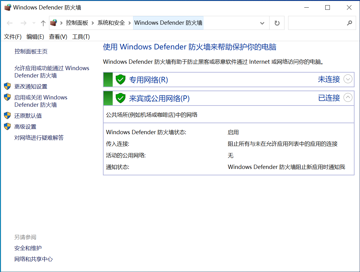 个人防火墙运行在 PC 上,用于监控 PC 和外网的通信信息。在 Windows 操作系统中集成了 Windows 防火墙。