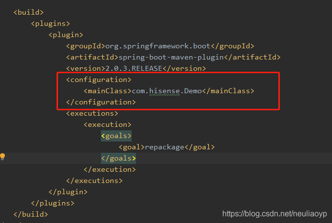 <mainClass>com.hisense.Demo</mainClass>