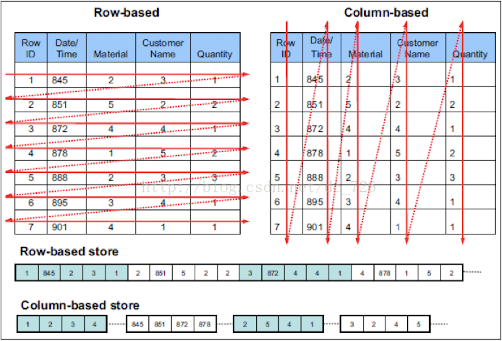 1)如前所述,分析场景中往往需要读大量行但是少数几个列。在行存模式下,数据按行连续存储,所有列的数据都存储在一个block中,不参与计算的列在IO时也要全部读出,读取操作被严重放大。而列存模式下,只需要读取参与计算的列即可,极大的减低了IO cost,加速了查询。