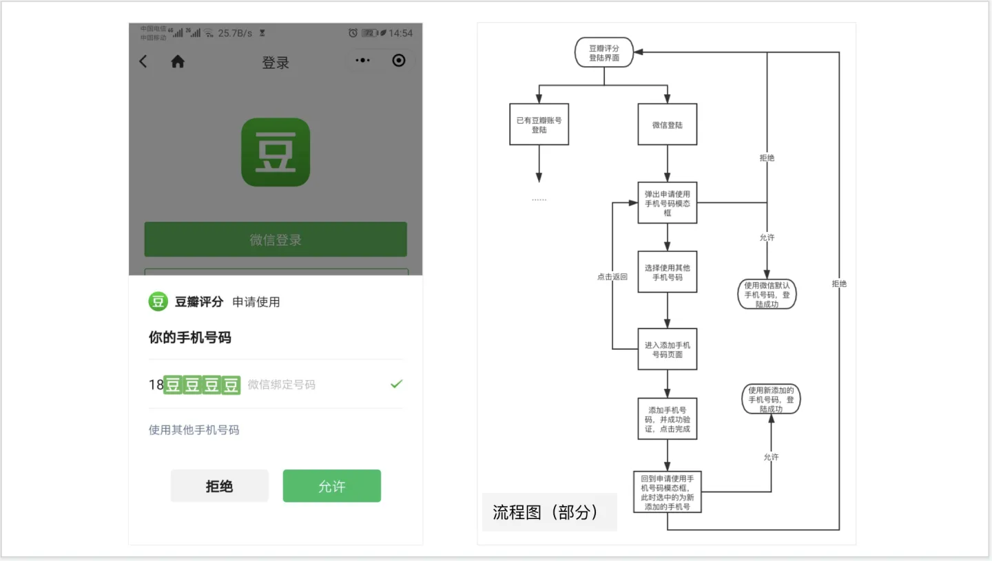 EXAMPLE 需求:”豆瓣评分“微信小程序支持用户使用微信登陆,并在登陆时获取用户的手机号码。