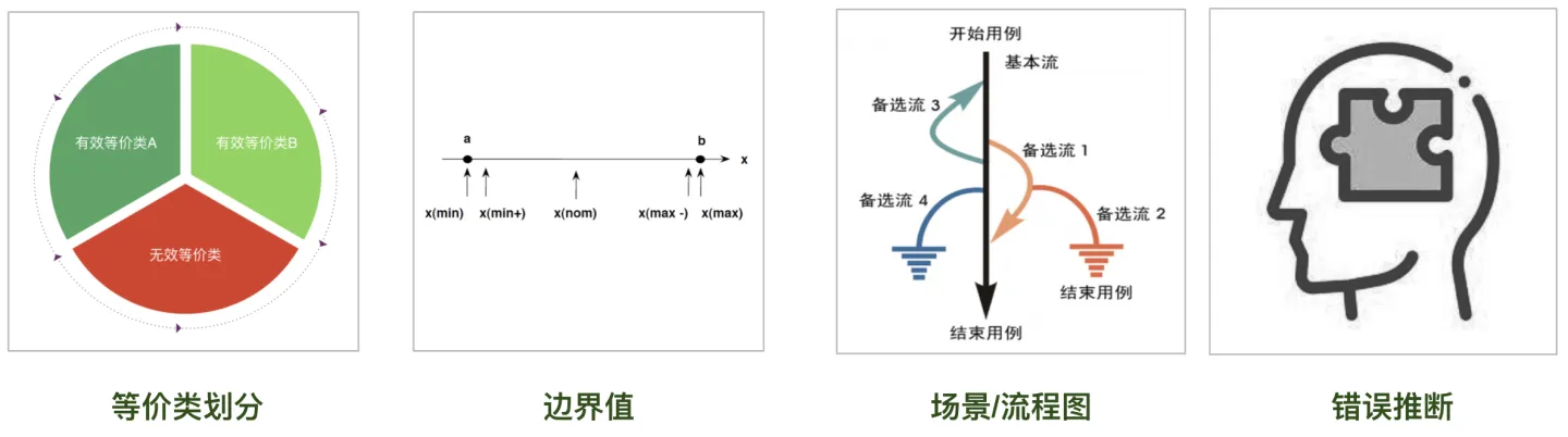 测试用例的设计方法有很多,但在实践中,最常用也是最有用的方法就是上图所示的这四种方法,下面我会详细介绍这些方法。