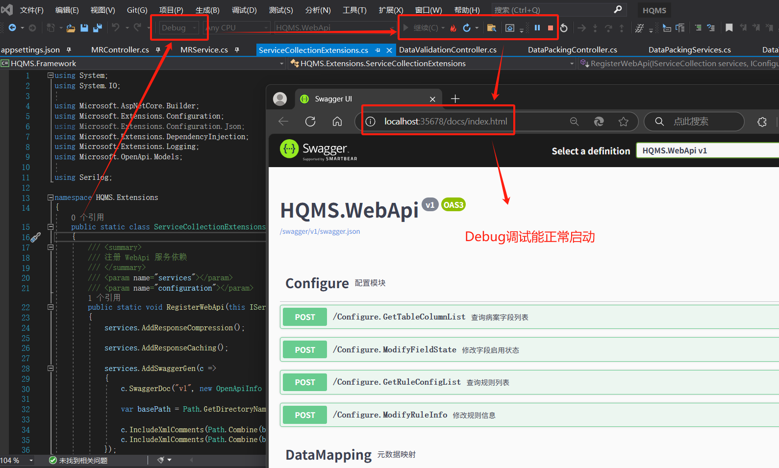 1、如下图所示,项目使用Debug启动调试,项目正常运行