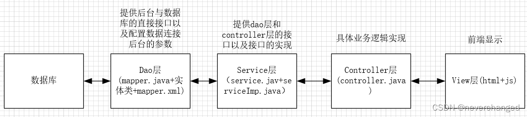 三层架构是指:视图层 View、服务层 Service,与持久层 Dao。它们分别完成不同的功能。