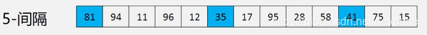(1)以5为增量间隔分割成若干个子序列,也就是说81、35、41是分割好的第一个子序列: