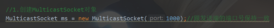 - 构造方法:MulticastSocket ms = new MulticastSocket(发送程序的端口号);