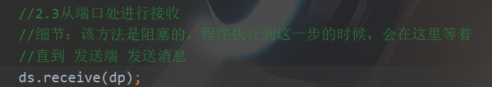 细节:该方法是阻塞的,程序执行到这一步的时候,会在这里等着直到 发送端 发送消息