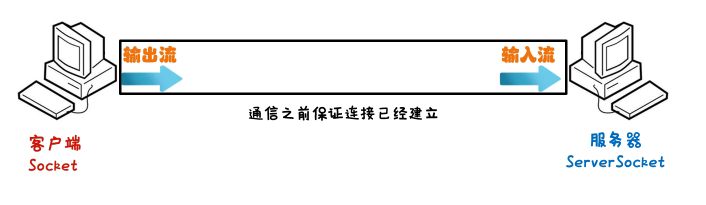 细节:IO流是在连接通道里面的。 通道方向从客户端到服务端,所以客户端是输出流,服务端是输入流