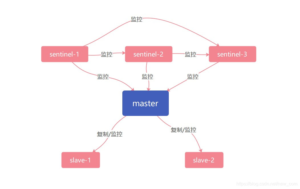 redis使用Redis Sentinel哨兵模式实现了redis的高可用方案,环境搭建过程可以参考这位网友的介绍Redis哨兵(Sentinel)模式。一主二从的拓扑关系图如下: