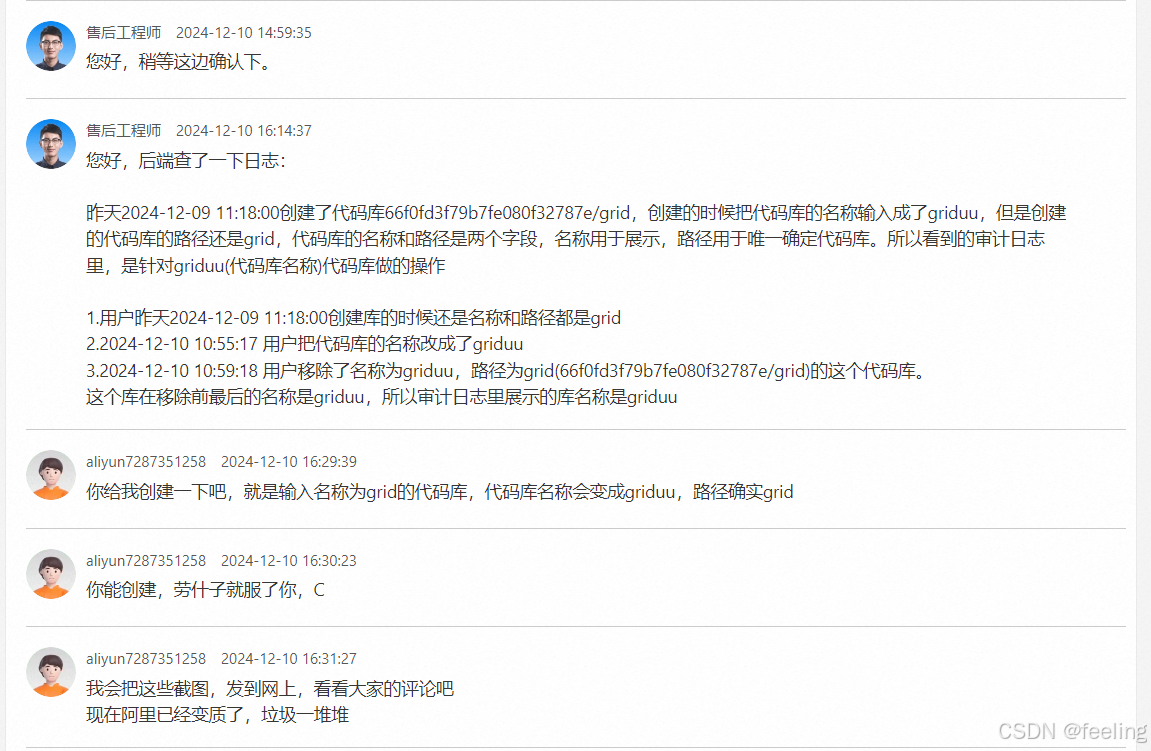 4.因为感觉不对劲,所以在前面的工单中接着问了这个事情,下面的就是我的截图,感觉阿里客服真的很差劲,是不是在忽悠我啊?