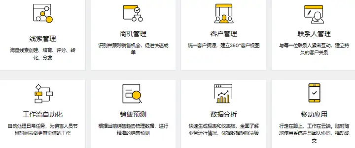 - 客户管理、销售自动化、市场营销、服务支持等一体化解决方案。